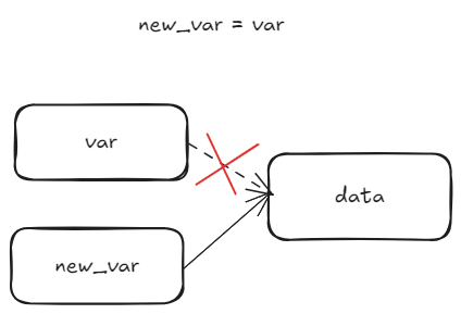 | str = str2 | str에 str2 복사 (Deep Copy) |